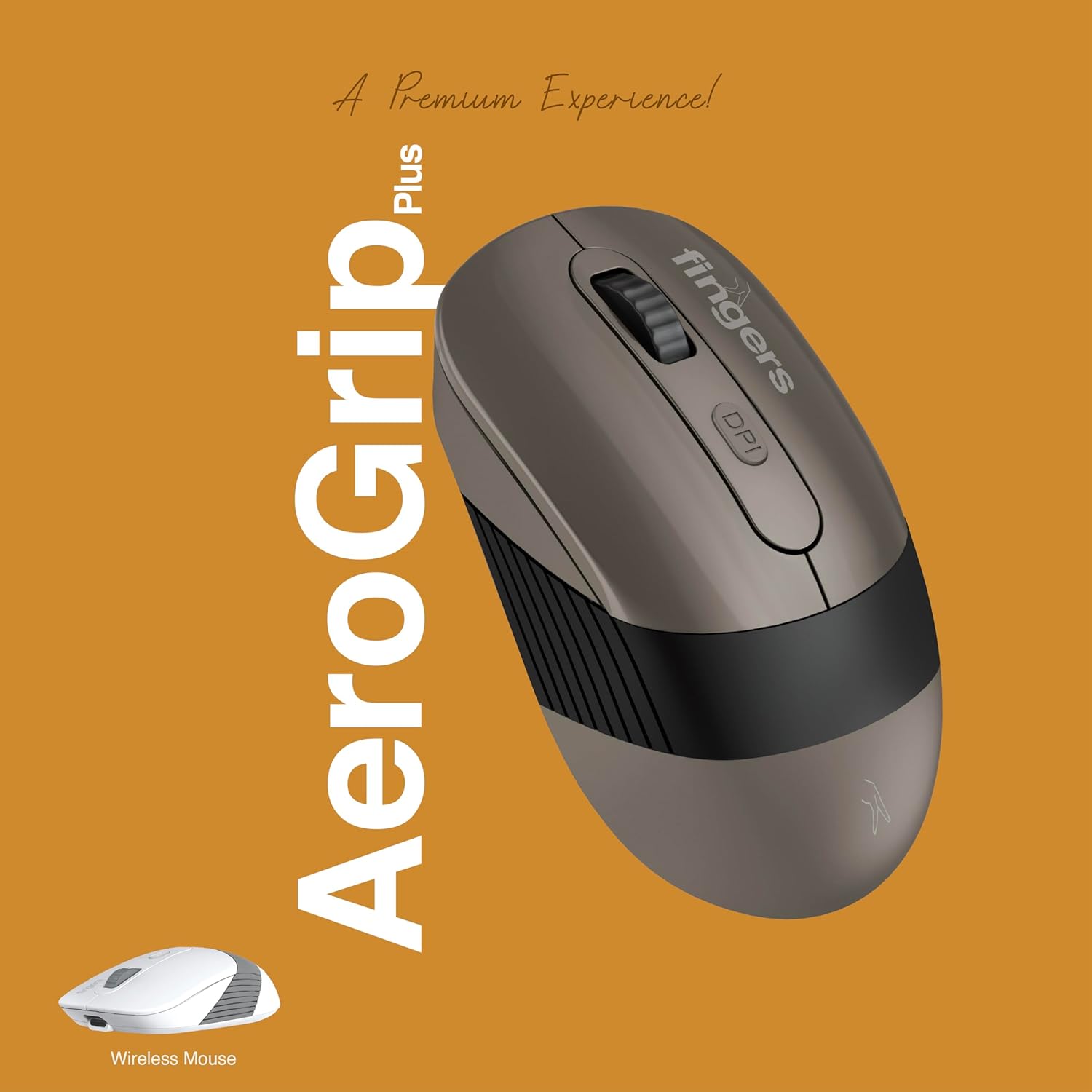 FINGERS AeroGrip Plus Wireless Mouse - 3-in-1 (USB Receiver + Bluetooth + Rechargeable), Adjustable DPI, Anti-Slip Grip, Ambidextrous Design, Works on Most Surfaces - Ash Brown